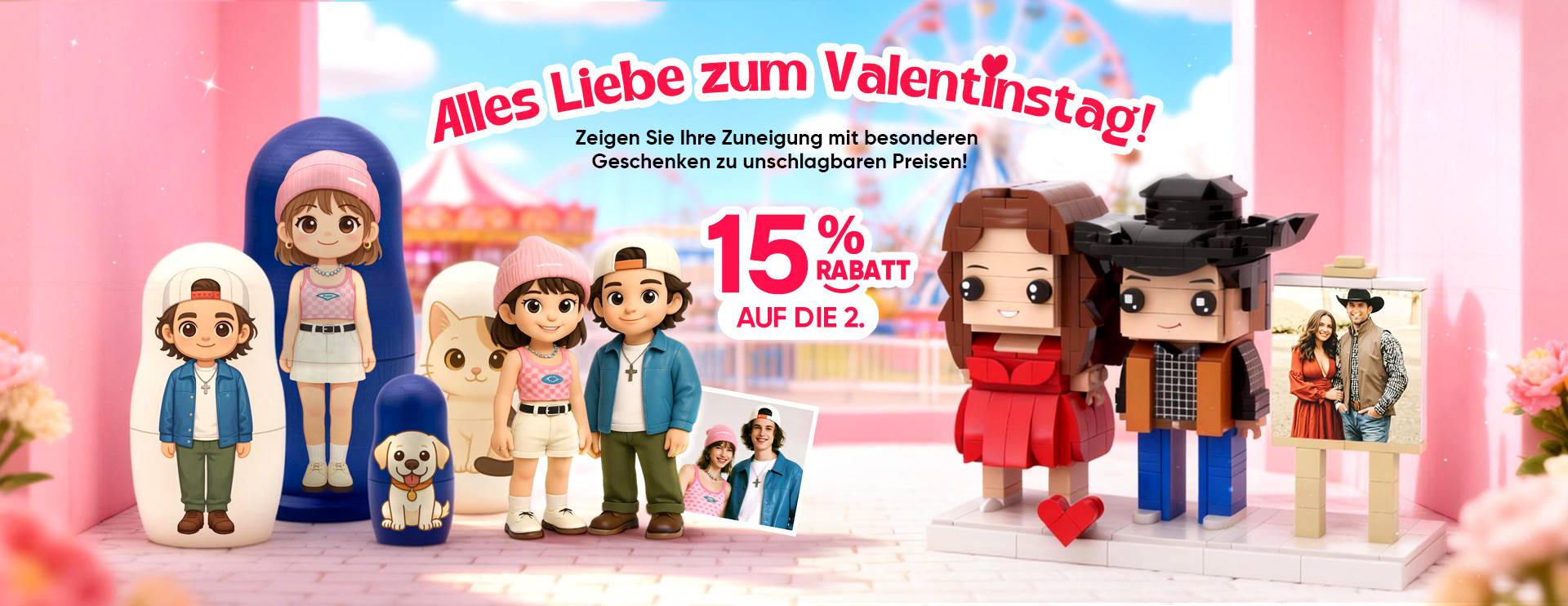 Valentinstagsgeschenke Für Sie, Ganzkörper-anpassbares 1-personen-maßgeschneiderte Niedliche Ziegelfiguren, Kleines Partikelblockspielzeug -