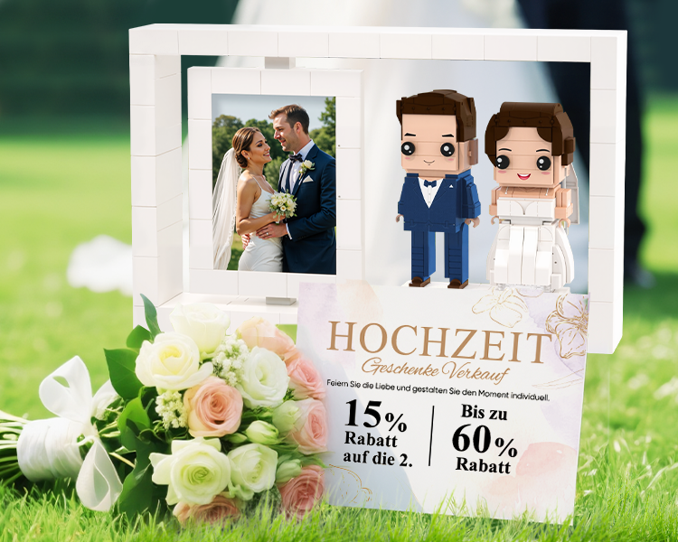 Hochzeitsgeschenke, Anpassbarer Kopf, 2 Personen, Individuelle Ziegelfiguren, Hochzeitsfoto, Ziegelfiguren -